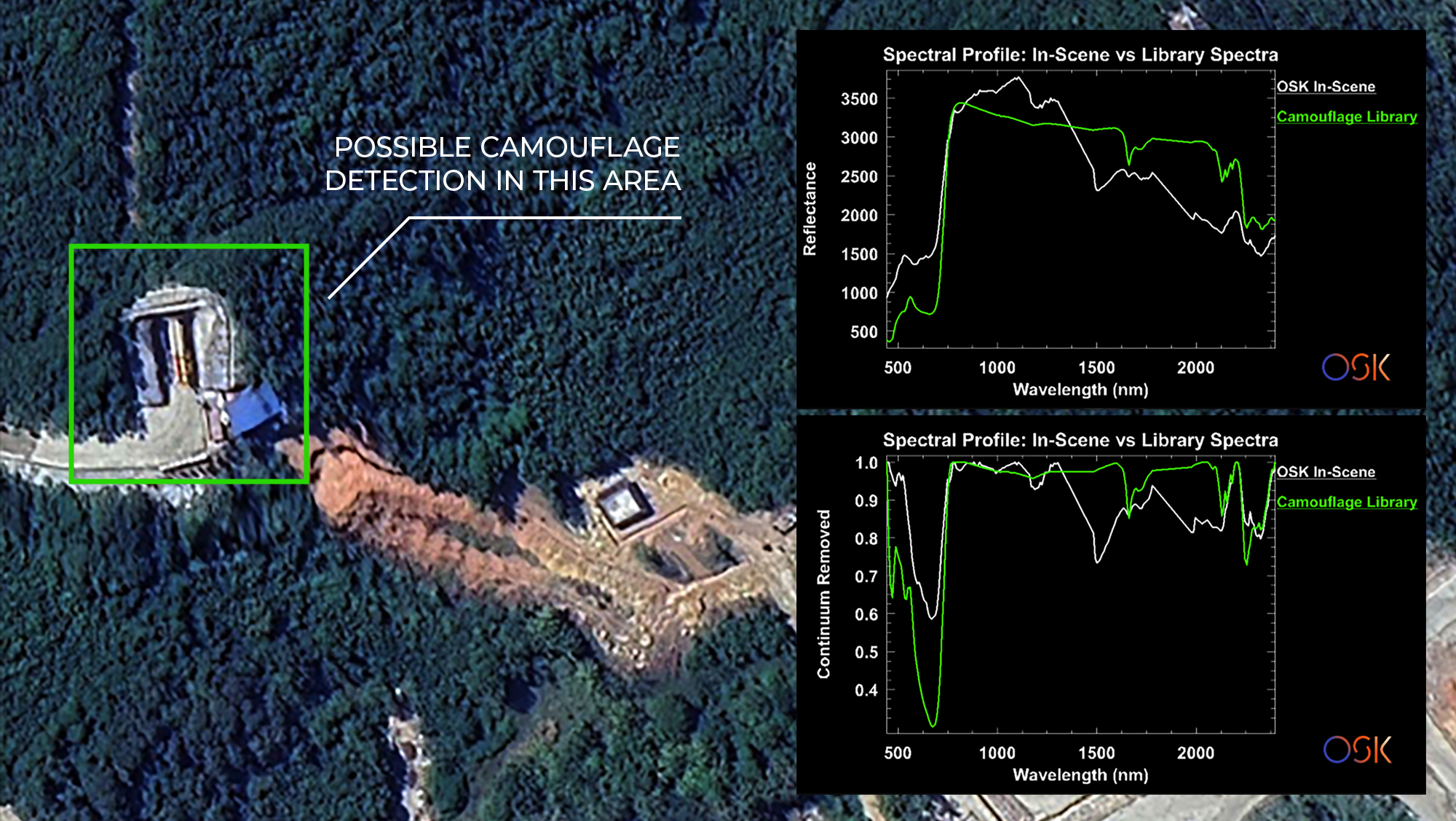 HSI provides detailed spectral information and precise identification and analysis of materials, offering a significant advantage in reconnaissance, surveillance, and target identification, while also enhancing operational effectiveness and safety. This capability directly improves the warfighter’s ability to identify threats in a timely, precise, and comprehensive manner from space, such as through counter-concealment and denial, the detection of fabrics or materials beneath camouflage, change detection in the signature of the earth for mine location, and identification of regions of earth capable of successfully sustaining an airstrip without the need for on-ground inspection.